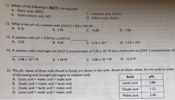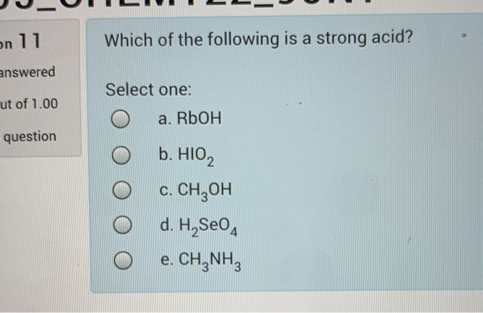 Solved On 11 Which Of The Following Is A Strong Acid Chegg Com