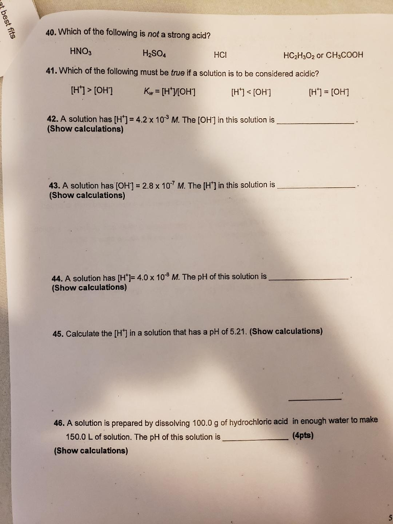 Solved 40 Which Of The Following Is Not A Strong Acid Hno3 Chegg Com