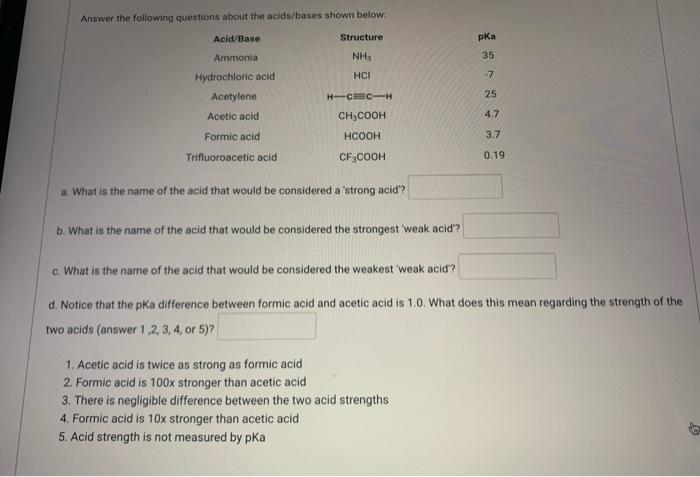 Solved Answer The Following Questions About The Acids Bases Chegg Com