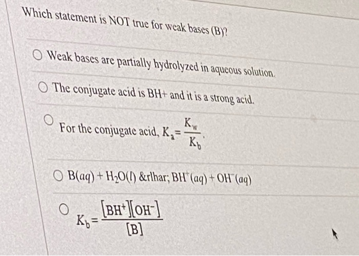 Solved Which Statement Is Not True For Weak Bases B 2 O Chegg Com